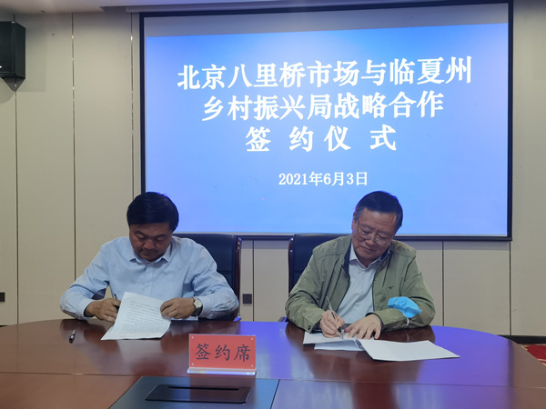 會上,臨夏州鄉(xiāng)村振興局、臨夏州農(nóng)投公司分別與北京八里橋市場農(nóng)產(chǎn)品中心批發(fā)市場有限公司簽訂了戰(zhàn)略框架協(xié)議和合作協(xié)議。