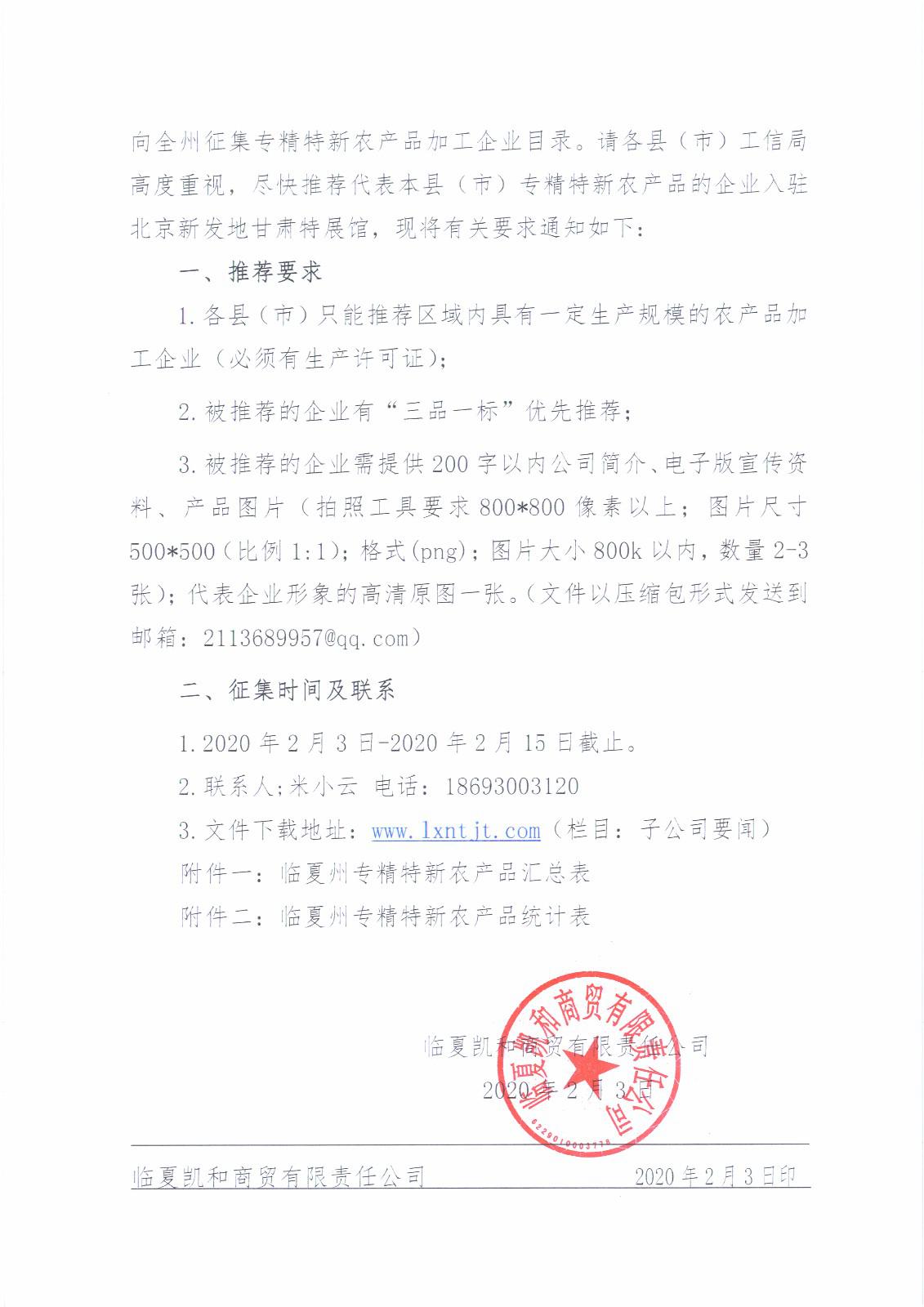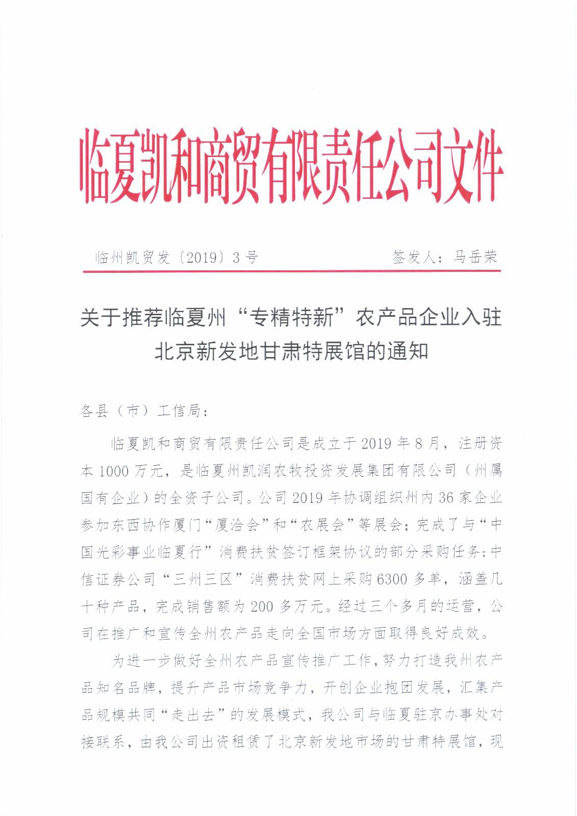 關(guān)于推薦臨夏州“專精特新”農(nóng)產(chǎn)品企業(yè)入駐北京新發(fā)地甘肅特展館的通知.pdf